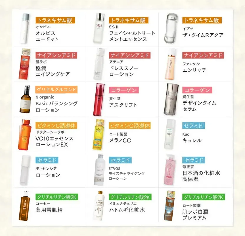 今回はそれぞれの成分が配合された、おすすめ化粧水を上記にまとめました♪