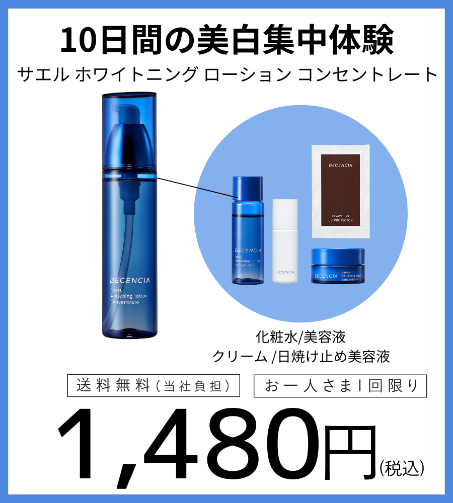 サエル ホワイトニング ローション コンセントレートと他ディセンシアの人気化粧品がセットになっていて、初回限定1,480円(税込)でお試しすることができるんです!