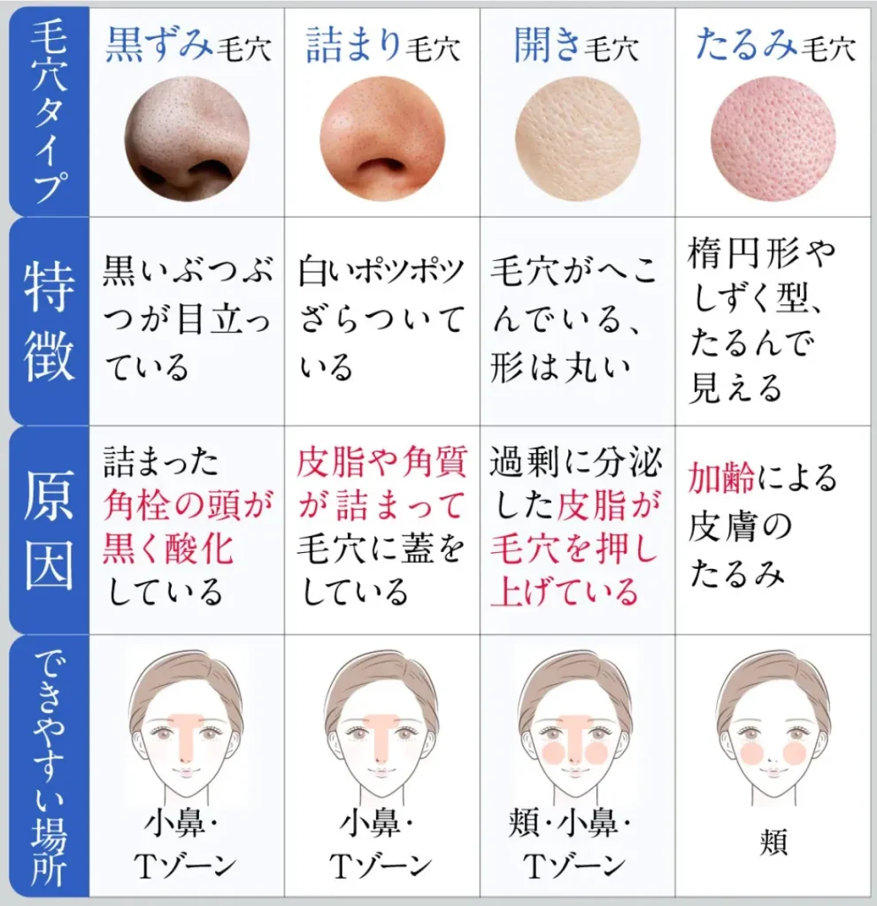 失敗しないためにも、まずは自分の毛穴タイプと原因を見ていきましょう♪