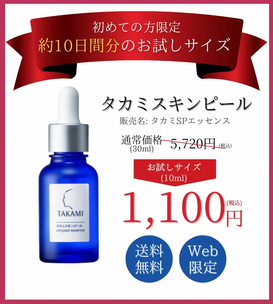 そんな、美容皮膚の発想から生まれた「タカミスキンピール」ですが、通常価格は税込5,720円/30mlです。